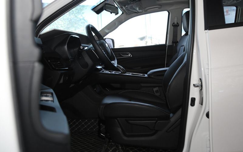全车真皮座椅在前驾驶位置支持电动调节功能。前排还支持加热和通风。舒适性配置包括自动隔断空调、后排气口、电动天窗(后排没有带杯托的中央扶手)等,不过要知道,皮卡主要不是为了后排的舒适性。入门级车型已经给了后排气口,这已经很尽责了!但后排只有两个独立的头枕!